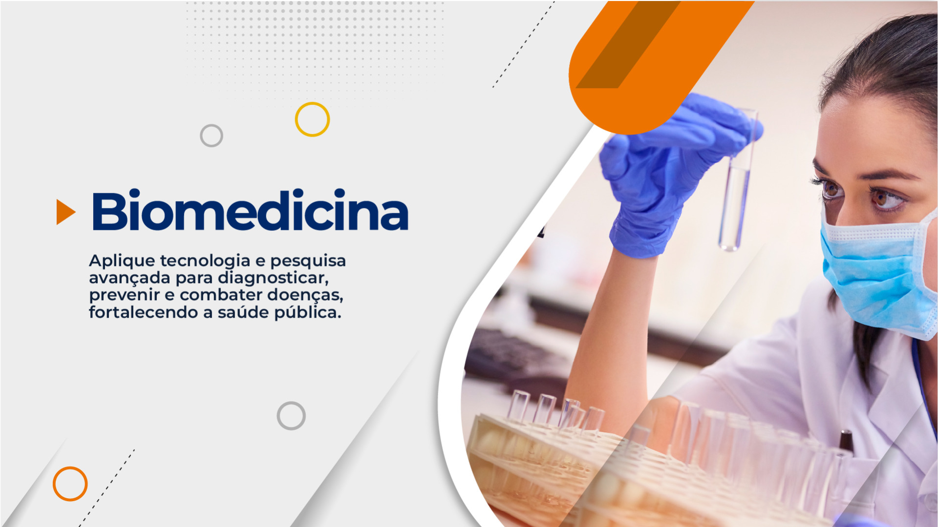 O curso de Biomedicina forma profissionais preparados para atuar na investigação, prevenção, diagnóstico e monitoramento de doenças, por meio de análises laboratoriais, pesquisa científica e desenvolvimento de tecnologias aplicadas à saúde. Com abordagem moderna e interdisciplinar, o curso integra conhecimentos de biologia, química, saúde humana e métodos laboratoriais, preparando o estudante para trabalhar com precisão técnica, visão crítica e responsabilidade ética.