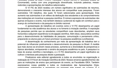 O tão aguardado livro de resumos do 6º Fórum de Iniciação Científica (FIC) da FPM e FCJP, FPC e FCC já está disponível!