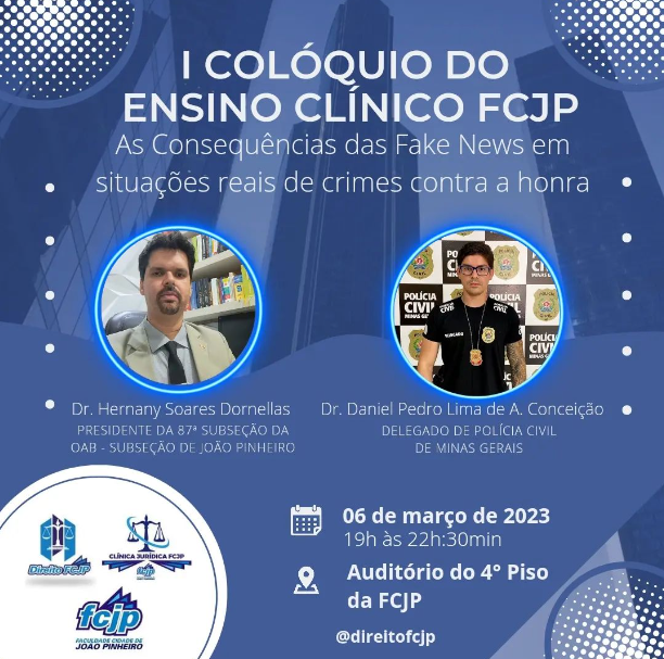 I Colóquio do Ensino Clínico FCJP - As Consequências das Fake News em situações reais de crimes contra a honra 09 de March de 2023 às 16:35 Detalhes